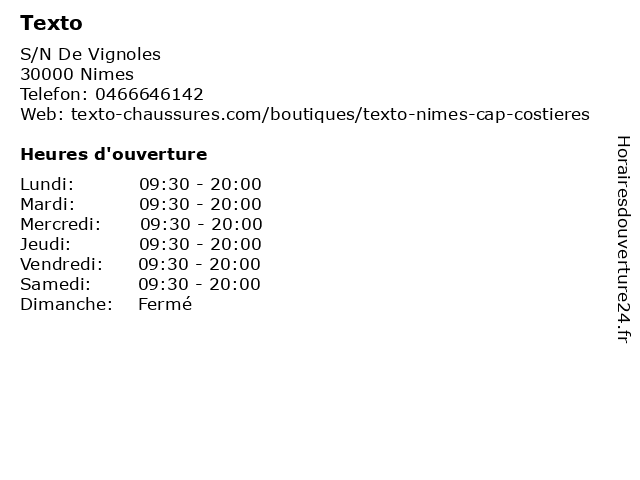 1 Texto (Distance: 2,12 km) 4 Rue De L'aspic, 30000 Nimes acessoires, femme, homme, la marque, les boutiques, sacs, texto 2 Texto France Services (Distance: 0,79 km) Cap Costieres, 30900 Nimes chaussures, france, magasins, services, texto 3 Texto France Services (Distance: 2,12 km) 4 Rue De l Aspic, 30000 Nimes chaussures, france, magasins, services, texto 4 Gandy (Distance: 1,10 km) 155 Rue Paul Laurent, 30900 Nîmes accessoires, bagages, gandy, maroquinerie, sacs 5 Maroquinerie du Sud (Distance: 1,11 km) 155 rue Paul Laurent, 30900 Nîmes accessoires, bagages, du, maroquinerie, sacs, sud 6 Franck Provost (Distance: 2,01 km) 16 Rue de L'aspic, 27000 Nimes expertise beauté, franck, la marque, provost, tendance coiffure, événement |
