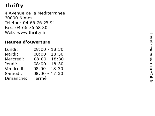1 Thrifty (Distance: 0,04 km) 4 avenue de la Méditerranée, 30000 Nîmes agence, location, thrifty, trajet, voiture 2 Thrifty (Distance: 8,79 km) n/a aéroport de Nîmes-Garons, 30800 Saint Gilles agence, location, thrifty, trajet, voiture 3 4 Ucar (Distance: 2,06 km) 170 Rue du Père Brottier, 30900 Nimes outils à louer, réservation, ucar, voitures à louer 5 Thrifty (Distance: 36,32 km) n/a Place de l'Europe, 84000 Avignon de location, réservation, thrifty, voiture 6 Thrifty (Distance: 43,66 km) n/a Mediterranee Airport, Mauguio, 34130 Montpellier de location, réservation, thrifty, voiture |
