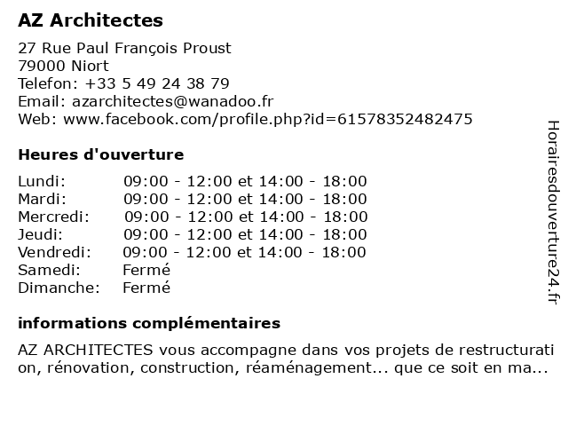 1 BEAUDOUIN & ENGEL - ARCHITECTES (Distance: 0,95 km) 84 Rue de Strasbourg, 79000 Niort architectes, beaudouin, engel 4 AZ Architectes (Distance: 29,92 km) 68 Boulevard des Champs Marots, 85200 Fontenay-le-Comte architectes, az 6 |
