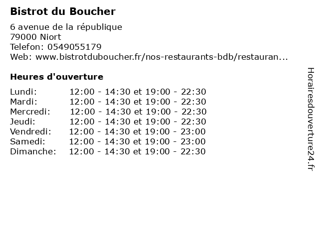 | Mardi | 12:00-14:30 et 19:00-22:30 |