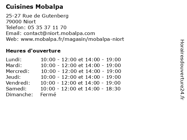 | Mardi | 10:00-12:00 et 14:00-19:00 |