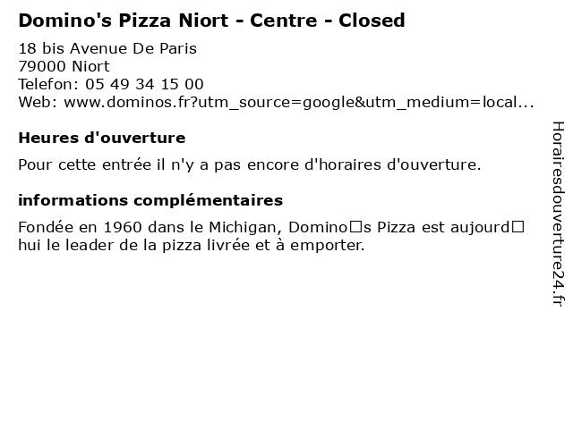 | Appeler Domino's Pizza Niort - Centre - Closed | |