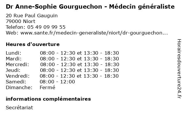 | Mercredi | 08:00-12:30 et 13:30-18:30 |