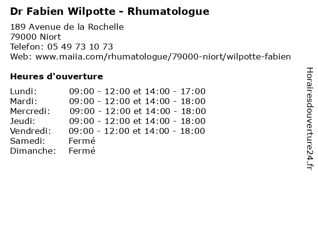 1 Dr Yann Proux - Rhumatologue (Distance: 1,32 km) 8 Rue d'Inkermann, 79000 Niort consultation, docteur, dr, proux, rhumatologie, rhumatologue, santé, yann 6 Fabien Granier - Ostéopathe - secrétariat (Distance: 53,75 km) 180 Rue Marius Lacroix, 17000 La Rochelle consultation, docteur, fabien, granier, med, médecin, médecine, ostéopathe, secrétariat, traitement |