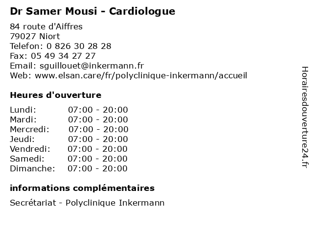 | Samedi | 07:00-20:00 |