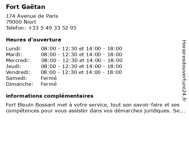 | Lundi | 08:00-12:30 et 14:00-18:00 |