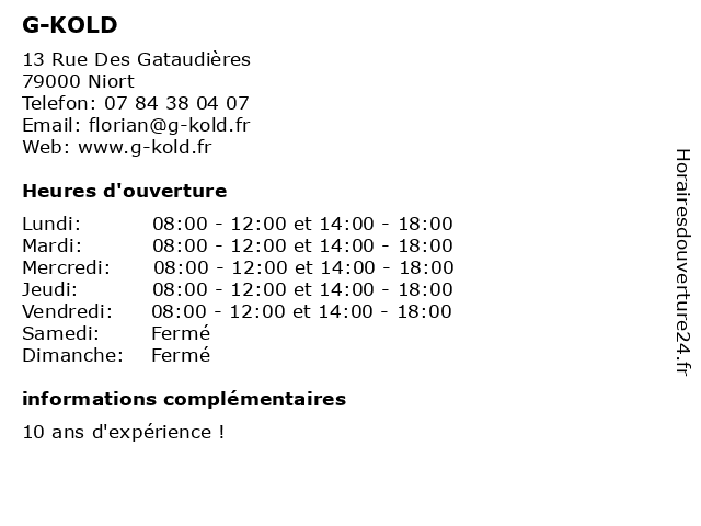| Lundi | 08:00-12:00 et 14:00-18:00 |