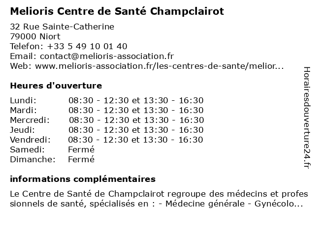 | Mercredi | 08:30-12:30 et 13:30-16:30 |