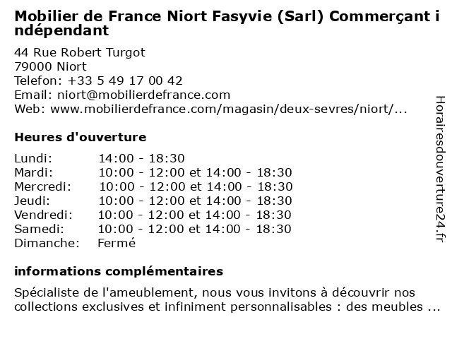 | Samedi | 10:00-12:00 et 14:00-18:30 |