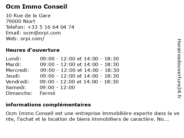 | Horaires d'ouverture | ||