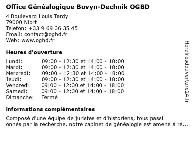 | Lundi | 09:00-12:30 et 14:00-18:00 |