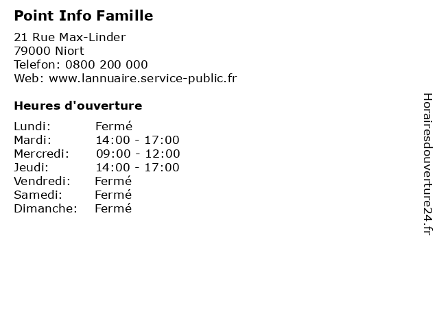 1 Phone Info Fontenay (Distance: 29,45 km) 12 Rue Georges Clemenceau, 85200 Fontenay-le-Comte fontenay, info, magasin reparation telephone, phone, reparation telephone, réparateur de téléphone, réparation mobile, réparation portable, réparation téléphone, réparation téléphone portable 2 Point Info Famille (Distance: 31,28 km) . Berlioz, 17700 Surgères administration, assoc public, famille, info, mairie, point 3 Phone Info Sainte-Hermine (Distance: 50,75 km) 84 Rue Georges Clemenceau, 85210 Sainte-Hermine hermine, info, phone, sainte 4 Point Info Famille (Distance: 55,71 km) 90 Rue de Bel-Air, 17000 La Rochelle administration, assoc public, famille, info, mairie, point 5 6 Médiathèque Centrale d'Agglomération Pierre-Moinot (Lecture Public) (Distance: 1,00 km) 1-7 Boulevard Main, 79000 Niort bibliothèque, centrale, d'agglomération, lecture, livre, moinot, médiathèque, pierre, public, services |