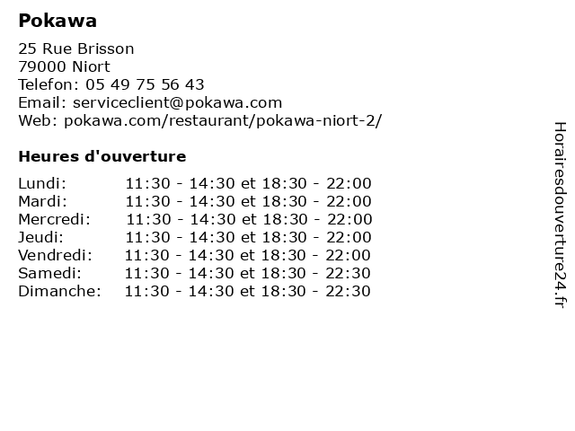 | Mardi | 11:30-14:30 et 18:30-22:00 |