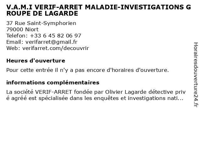 Termes de recherche pour V.A.M.I VERIF-ARRET MALADIE-INVESTIGATIONS GROUPE DE LAGARDE:de, groupe, maladie, lagarde, arret, verif, investigations, v.a.m.i |