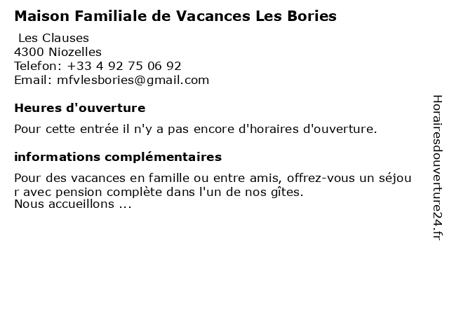 | Appeler Maison Familiale de Vacances Les Bories | |