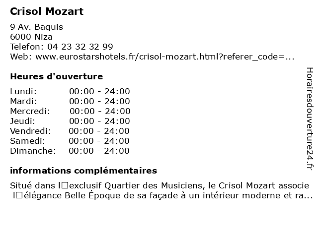Horaires d'ouverture |