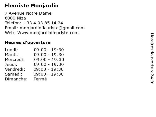 1 Shopping Flor - Artisan Fleuriste (Distance: 1,02 km) 10 Boulevard Joseph Garnier, 06000 Nice arrangements, artisan, dessins, décorations, fleuriste, flor, mariage, shopping 2 Vegetal Fleuriste Nice (Distance: 1,22 km) 31 avenue de borriglione, 06100 Nice compositions, fleuriste, florales, nice, plantes, vegetal, vert 3 Fleuriste Au Paillon Fleuri (Distance: 1,42 km) 1 Place de Tende, 06300 Nice au, bouquet, fleuri, fleuriste, fleurs, paillon 4 FLEURIA Fleuriste Nice (Distance: 1,79 km) 4 Boulevard de l'Armée des Alpes, 06300 Nice fleuria, fleuriste, nice 5 Fleuriste le Jardin d'Alice (Distance: 1,81 km) 10 Boulevard Gorbella, 06100 Nice bouquet, d'alice, fleuriste, fleurs, jardin, le 6 Hervé Frezal - fleuriste (Distance: 4,96 km) 33 Boulevard Maréchal Leclerc, 06310 Beaulieu-sur-Mer boutique, composition, deuil, fleuriste, fleurs, frezal, hervé, livraison, mariage, plantes |