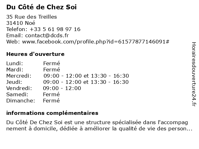 | Samedi | Fermé |