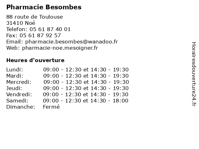 | Lundi | 09:00-12:30 et 14:30-19:30 |