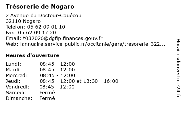 Termes de recherche pour Trésorerie de Nogaro:de, administration, service, services publics, trésorerie, nogaro |