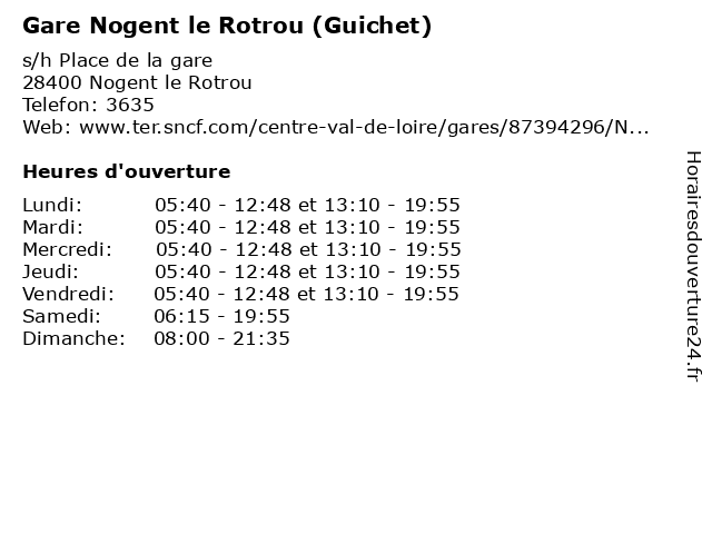 Termes de recherche pour Gare Nogent le Rotrou (Guichet):le, nogent, gare, service, station, guichet, rotrou |