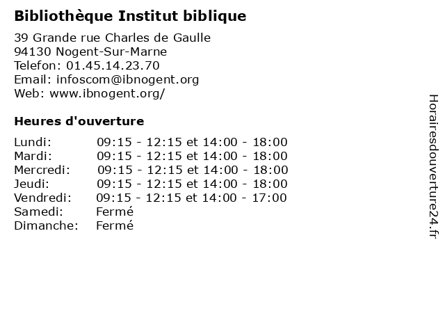 | Mercredi | 09:15-12:15 et 14:00-18:00 |