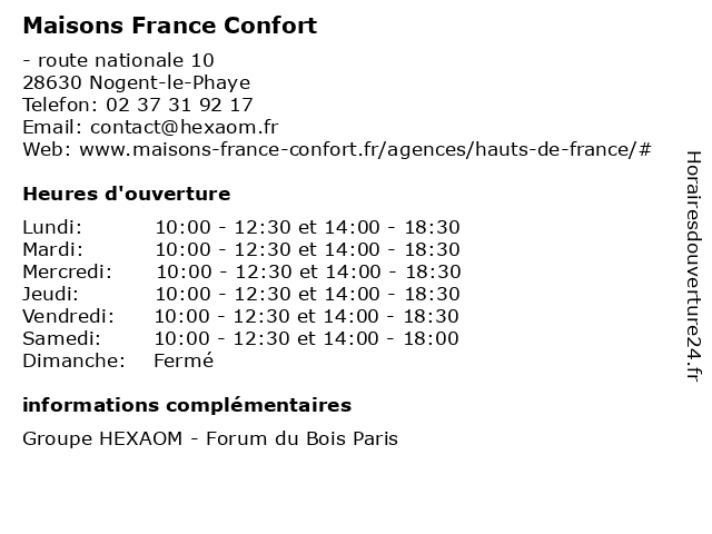 | Mardi | 10:00-12:30 et 14:00-18:30 |