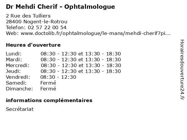 | Mardi | 08:30-12:30 et 13:30-18:30 |