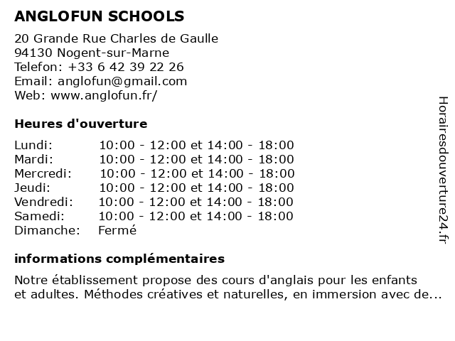 Lundi | 10:00-12:00 et 14:00-18:00 |
