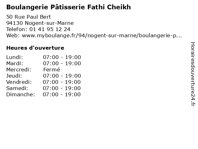 | Lundi | 07:00-19:00 |