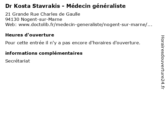 1 Dr Kosta Stavrakis - Médecin généraliste (Distance: 6,67 km) 17 Rue des Coudes Cornettes, 93230 Romainville dr, généraliste, kosta, médecin, médecine, médical, pharmaceutique, stavrakis, traitement 2 Domidom (Distance: 0,04 km) 13 Grande rue Charles De Gaulle, 94130 Nogent-sur-Marne aide à domicile, alzheimer, domidom, dépendance, medical, services 3 Dr Isabelle Roux - Médecin généraliste (Distance: 0,05 km) 6 Rue Gabriel Péri, 94130 Nogent-sur-Marne docteur, dr, generaliste, généraliste, isabelle, medical, médecin, roux, soin 4 Biofutur - Laboratoire d'Analyse Médicale (Distance: 0,08 km) 23 Boulevard de Strasbourg, 94130 Nogent-sur-Marne analyses, biofutur, d'analyse, laboratoire, laboratoires, medical, médicale, services 5 Dr Amina Chaib Belkhodja - Gynécologue obstétricien (Distance: 0,19 km) 2 Place du Général Leclerc, 94130 Nogent-sur-Marne amina, belkhodja, chaib, clinique, docteur, dr, generaliste, gynécologue, lyon, medecin, médipôle, obstétricien, privée, sante, villeurbanne 6 Nabila Meniri - Diététicien (Distance: 1,28 km) 188 Grande Rue Charles de Gaulle, 94130 Nogent-sur-Marne cabinet, diététicien, diététique, medical, meniri, nabila, secrétariat |