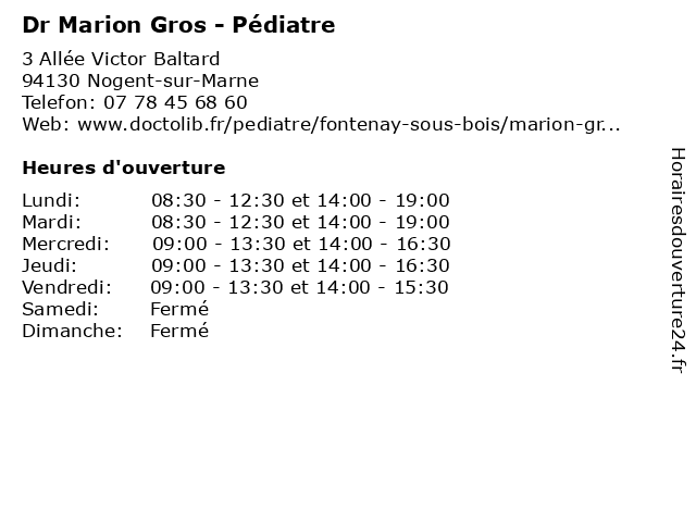 | Lundi | 08:30-12:30 et 14:00-19:00 |