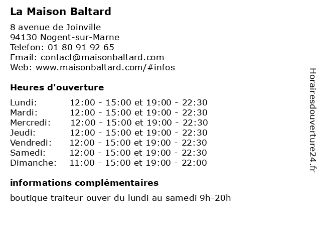 | Samedi | 12:00-15:00 et 19:00-22:30 |