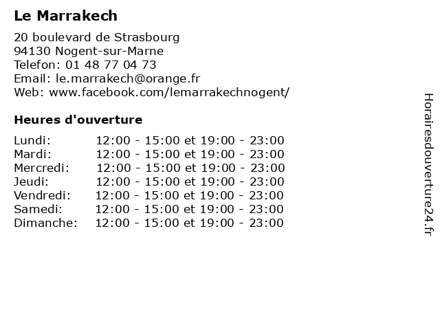 | Mardi | 12:00-15:00 et 19:00-23:00 |