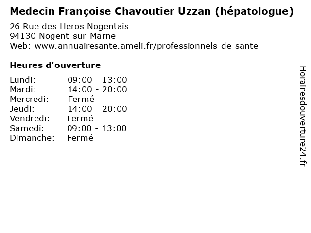Termes de recherche pour Medecin Françoise Chavoutier Uzzan (hépatologue):services, medecine, santé, francoise, docteur, médecin, uzzan, hépatologue, chavoutier |