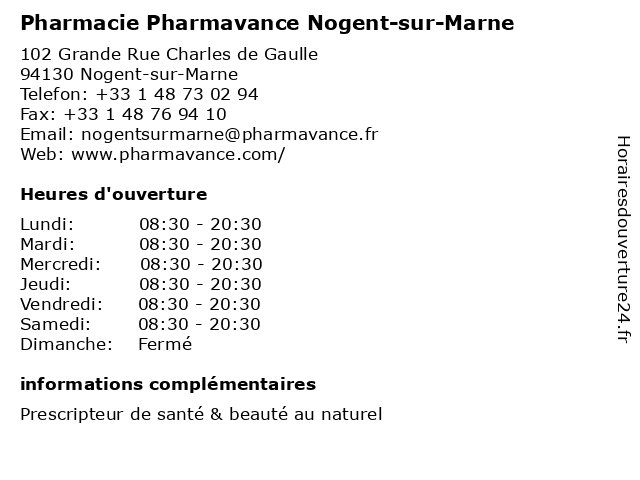 | Vendredi | 08:30-20:30 |