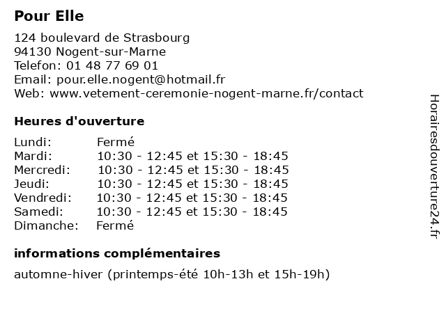 | Lundi | Fermé |