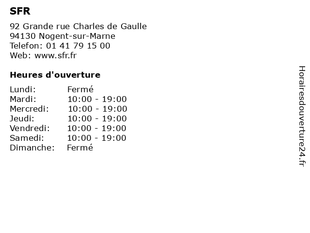 1 SFR (Distance: 2,02 km) 12 rue de la Mare à Guillaume, 94120 Fontenay Sous Bois abonnements de téléphonie mobile ou fixe fixe ou carte prépayée, accès internet haut débit ou la fibre optique ainsi que des abonnements à des bouquets de chaînes de télévision ., sfr, téléphones mobiles 2 SFR (Distance: 2,13 km) . Avenue du Maréchal Joffre, 94124 Fontenay sous Bois beaute, boutiques, chaussures, deco, enfants, mode femme, mode hommes, restaurant, sfr, sport 3 SFR (Distance: 3,12 km) 19 Boulevard Maurice Berteaux, 94100 Saint Maur Des Fosses abonnements de téléphonie mobile ou fixe fixe ou carte prépayée, accès internet haut débit ou la fibre optique ainsi que des abonnements à des bouquets de chaînes de télévision ., sfr, téléphones mobiles 4 SFR (Distance: 4,33 km) 100 Boulevard de Créteil, 94100 Saint Maur des Fosses abonnements de téléphonie mobile ou fixe fixe ou carte prépayée, accès internet haut débit ou la fibre optique ainsi que des abonnements à des bouquets de chaînes de télévision ., sfr, téléphones mobiles 5 SFR (Distance: 4,44 km) 234 Boulevard du Mont d'Est, 93193 Noisy-le-Grand arcades, centre, commercial, sfr 6 SFR (Distance: 5,00 km) . Avenue du Général-de-Gaulle, 93117 Rosny-Sous-Bois beaute, cafe, chaussures, enfants, hommes, lingerie, mode femmes, restaurant, sfr, sport |