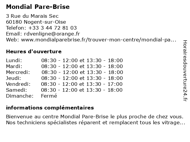 | Lundi | 08:30-12:00 et 13:30-18:00 |