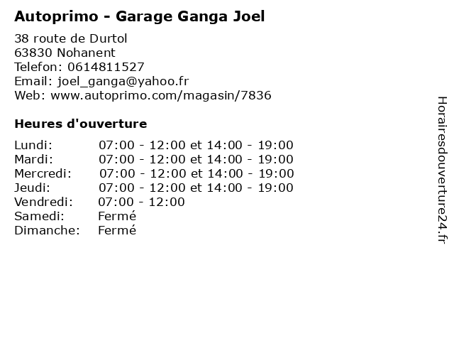 | Lundi | 07:00-12:00 et 14:00-19:00 |