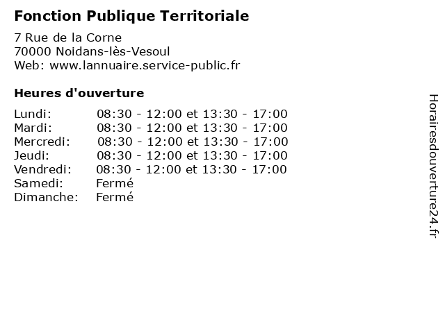 | Lundi | 08:30-12:00 et 13:30-17:00 |