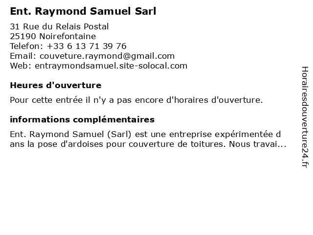 Termes de recherche pour Ent. Raymond Samuel Sarl:sarl, samuel, raymond, ent. |