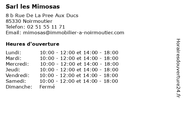 Lundi | 10:00-12:00 et 14:00-18:00 |