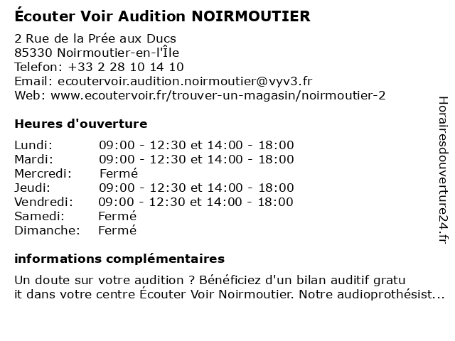 | Lundi | 09:00-12:30 et 14:00-18:00 |