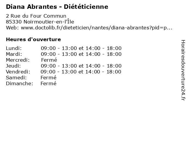 1 Marine Voisin - Diététicienne (Distance: 2,64 km) 2 Rue des Sableaux, 85330 Noirmoutier-en-l'Île alimentation, dieteticien, diététicienne, marine, nourriture, sante, voisin 2 Véronique Ganacheau - Diététicienne (Distance: 14,66 km) 5 Rue du Traité de Lisbonne, 44210 Pornic alimentation, dieteticien, diététicienne, ganacheau, nourriture, sante, véronique 3 Alice le Carre - Diététicienne-Nutritionniste (Distance: 17,07 km) 2 Rue Dr Auguste Guilmin, 44210 Pornic alice, cabinet, carre, diététicienne, diététique, entreprise, le, nutritionniste, société 4 Audrey Baudry - Diététicienne (Distance: 17,90 km) 88 La Geltiere, 44210 Pornic alimentation, audrey, baudry, dieteticien, diététicienne, nourriture, sante 5 Dr Diana Benahmed - Médecin généraliste (Distance: 27,07 km) 11 Boulevard Georges Charpak, 44600 Saint-Nazaire benahmed, consultation, diana, docteur, dr, généraliste, med, medecine, medical, médecin, traitement 6 Dr Diana Ianculovici - Médecin généraliste (Distance: 42,74 km) 263 Rue de la République, 85220 Commequiers diana, docteur, dr, generaliste, généraliste, ianculovici, medical, médecin, soin |
