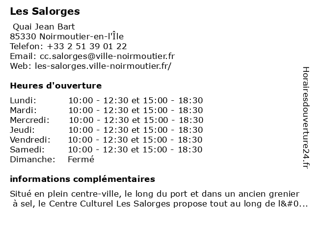 Samedi | 10:00-12:30 et 15:00-18:30 |
