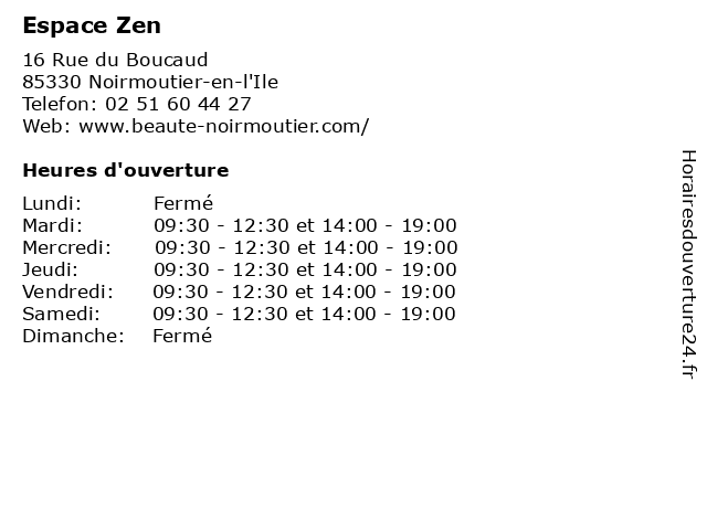 | Samedi | 09:30-12:30 et 14:00-19:00 |