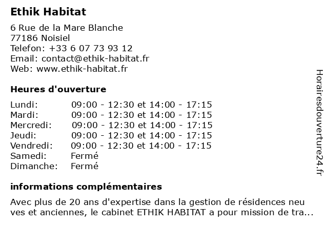 Horaires d'ouverture |