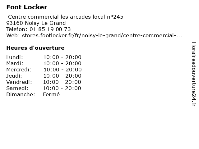 1 Foot Locker (Distance: 0,37 km) 234 Boulevard du Mont d'Est, 93193 Noisy-le-Grand alimentation, beauté & santé, culture & loisirs, enfants, foot, high-tech, locker, maison & déco, mode, restaurants 2 Foot Locker (Distance: 10,28 km) - Boulevard Maurice Thorez, 93000 Bobigny chaussures, foot, locker, sport. 3 Foot Locker (Distance: 12,36 km) . Route des petits ponts, 93270 Sevran beaute, chaussures, decoration, foot, locker, mode enfants, mode femme, mode homme, restauration, service, sport, telephonie 4 Foot Locker (Distance: 13,83 km) 30 Avenue d'Italie, 75013 Paris cafe, enfants.chaussures, foot, lingerie, locker, mode hemmes, mode homme, restaurant 5 Foot locker (Distance: 14,15 km) 23 Rue Madeleine Vionnet, 93300 Aubervilliers alimentation, beauté & sante, culture & loisirs, enfants, foot, high-tech, locker, maison & déco, mode, restaurants 6 Foot Locker (Distance: 16,45 km) 13 Rue d'Amsterdam, 75008 Paris cafe, chaussures, enfants, foot, homme, locker, mode femme, restaurant, service, sport |