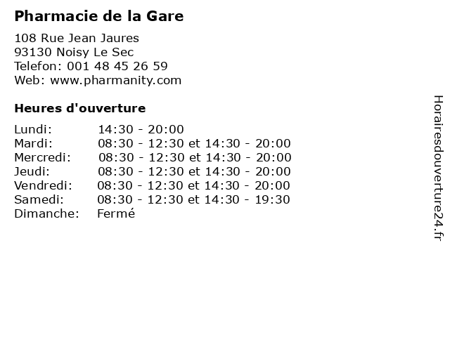 1 Pharmacie de la Gare (Distance: 0,01 km) 108, rue Jean Jaurès, 93130 Noisy Le Sec de, gare, la, la médecine, la pharmacie, la santé, les soins, pharmacie 2 Pharmacie de la Gare (Distance: 3,32 km) 28 avenue de la République, 93110 Rosny sous Bois de, gare, homéopathie, la, médicaments, orthopédie, parapharmacie, pharmacie 3 Pharmacie de la Gare (Distance: 4,47 km) 2 Avenue de la Division Leclerc, 93700 Drancy de, gare, herboristerie, la, médicaments, paramédical, parapharmacie, pharmacie, pharmacien, santé, traitements 4 Pharmacie de La Gare (Distance: 8,46 km) 6 rue de Paris, 94340 Joinville-le-Pont de, gare, homéopathie, la, médicaments, orthopédie, parapharmacie, pharmacie 5 Pharmacie de la Gare (Distance: 10,75 km) 1 Rue Jouffroy d Abbans, 75017 Paris de, gare, la, médicaments, pharmacie, santé, service 6 Pharmacie de la Gare (Distance: 12,31 km) - du Cours, 77185 Lognes de, gare, la, la médecine, la pharmacie, la santé, les soins, pharmacie |
